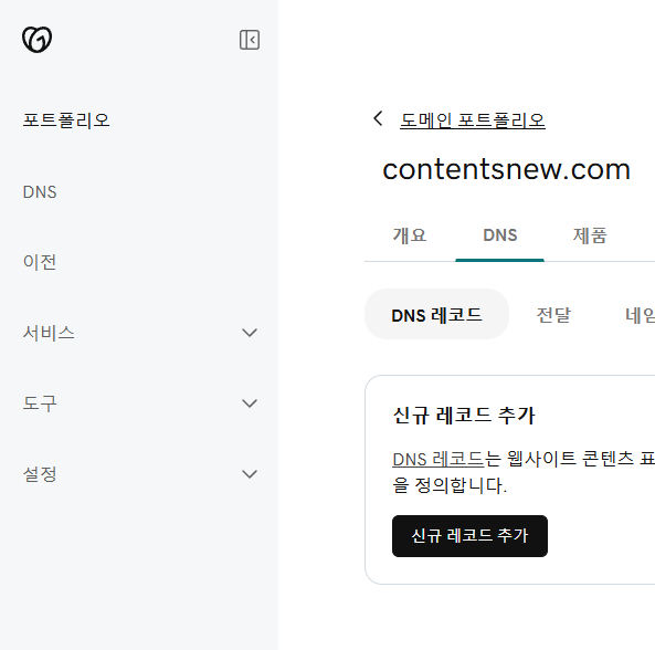 [도메인 포트폴리오 - 본인 도메인 - DNS레코드- 신규레코드 추가]